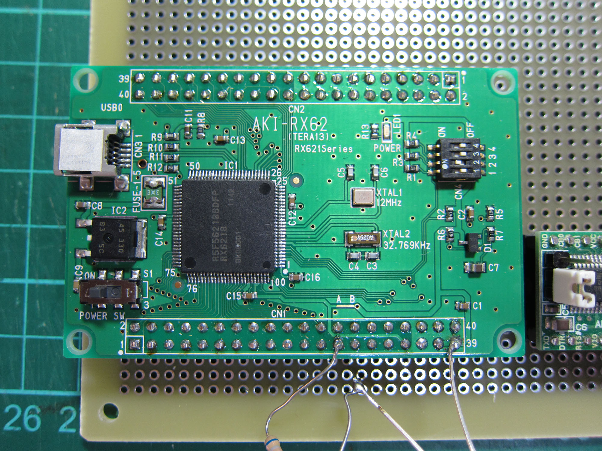 AKI-RX62 に確認用 LED(赤) をCN1、25番(P30) に接続します。